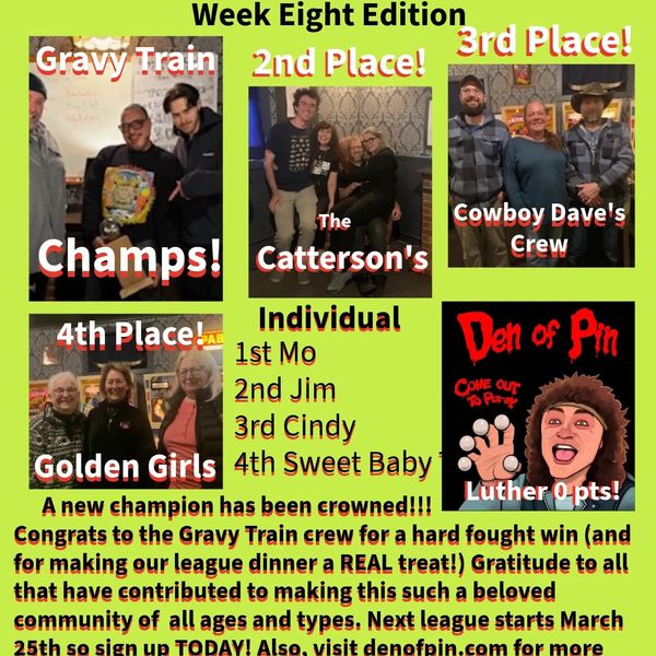 Den of Pin is open to the public regular hours. We host tournaments, private parties and workshops. We buy, sell, trade, and consign vintage games as well as offer service and repair.